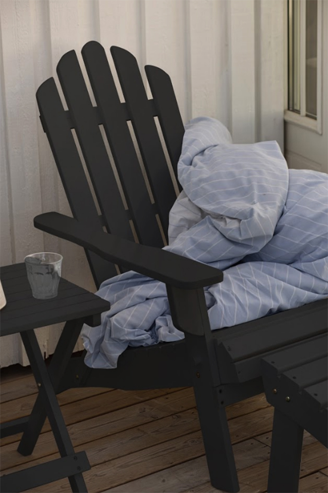 Réutiliser – Meubles qui sont de véritables vintage et donc entièrement recyclés. Par exemple, des tables à manger utilisées lors de mariages indiens au début des années 1900, des chaises provenant de bâtiments scolaires abandonnés et du rangement charmant sauvé de la poubelle. Aucune nouvelle production n'a eu lieu.