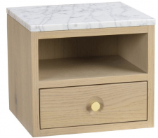 | Matériau: | Fabriqué en placage de chêne sur MDF. Façade de tiroir en chêne massif , glissières en métal et dessus en marbre blanc. , intérieur en bois dur |